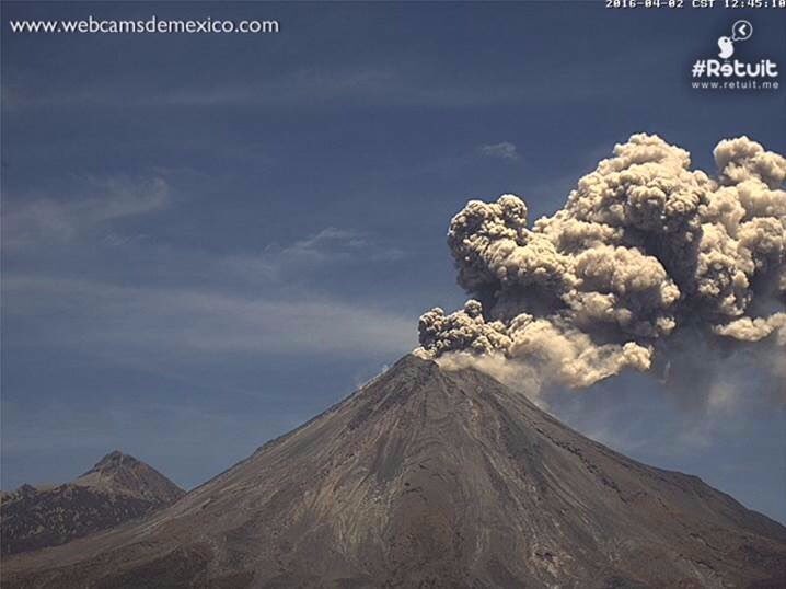 Exhalación del #VolcánDeColima a las 12:41 hrs, columna 2,000 mts, dirección noreste, contenido moderado de cenizapic.twitter.com/APk15imcUP