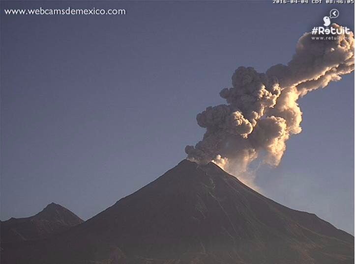 Exhalación #VolcánDeColima a las 08:42 hrs, columna 2,000 mts, dirección sureste, contenido moderado de cenizapic.twitter.com/fwjZbFaEmH
