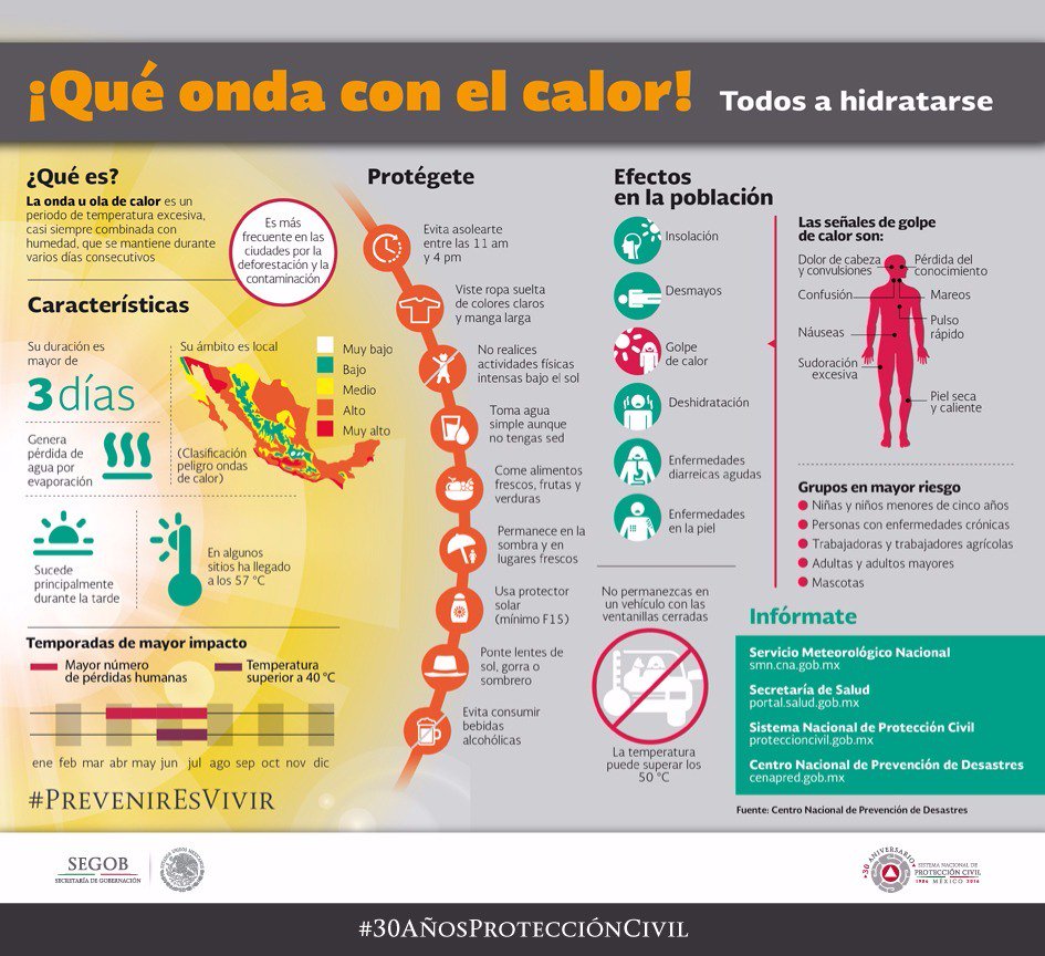Protégete del #Calor, no realices actividades físicas intensas bajo el sol #30AñosProtecciónCivilpic.twitter.com/z2o5Ik8kUY