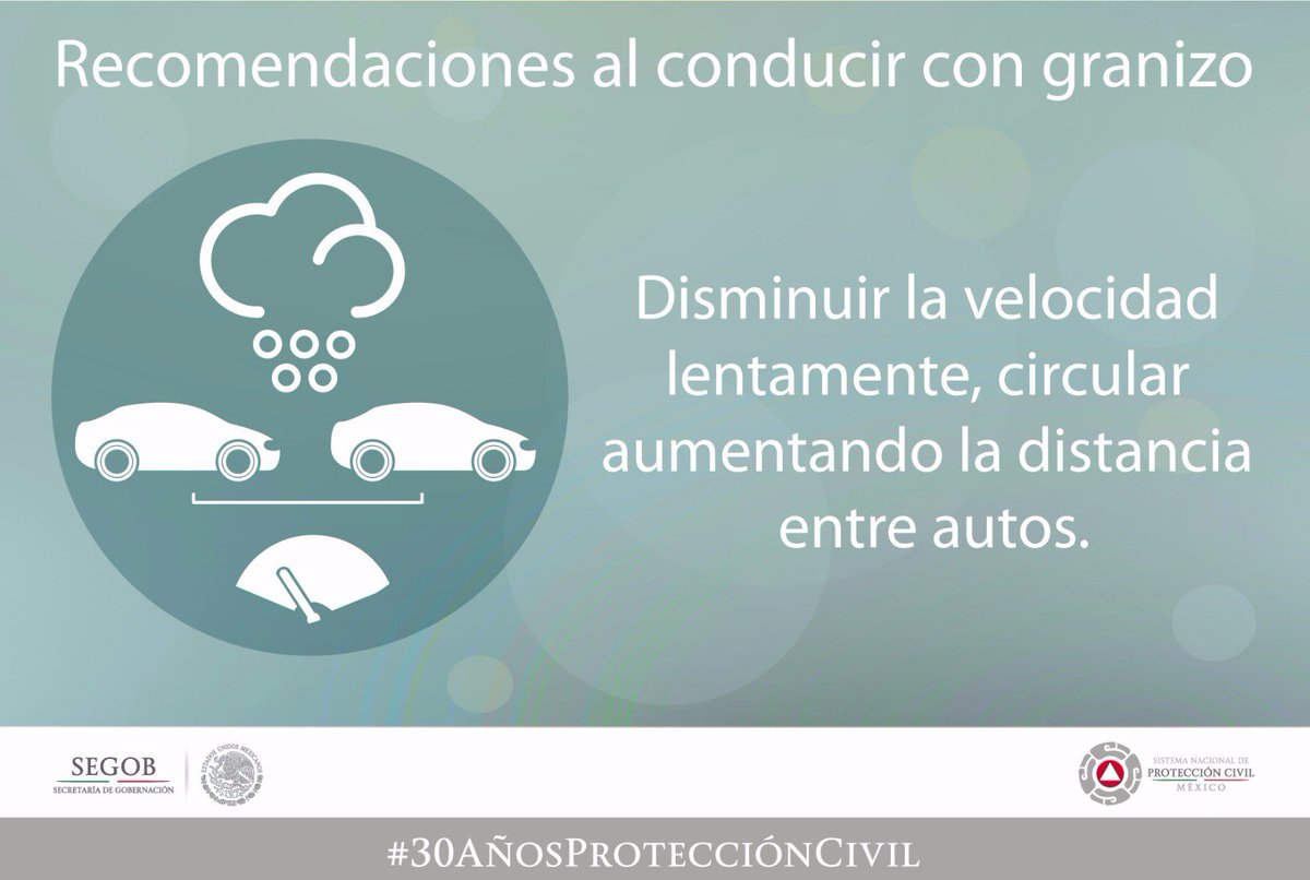 El granizo puede provocar muchos accidentes, por ellos extrema precauciones al conducir y sigue recomendacionespic.twitter.com/mweblIgGL1