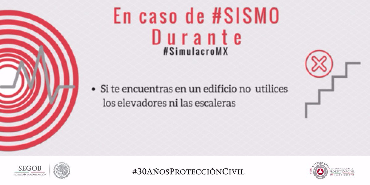 Ten presente que ante un #Sismo debes evitar escaleras y elevadores, y replegarte a un lugar seguro #PrevenirEsVivirpic.twitter.com/A3qdqkqIK7