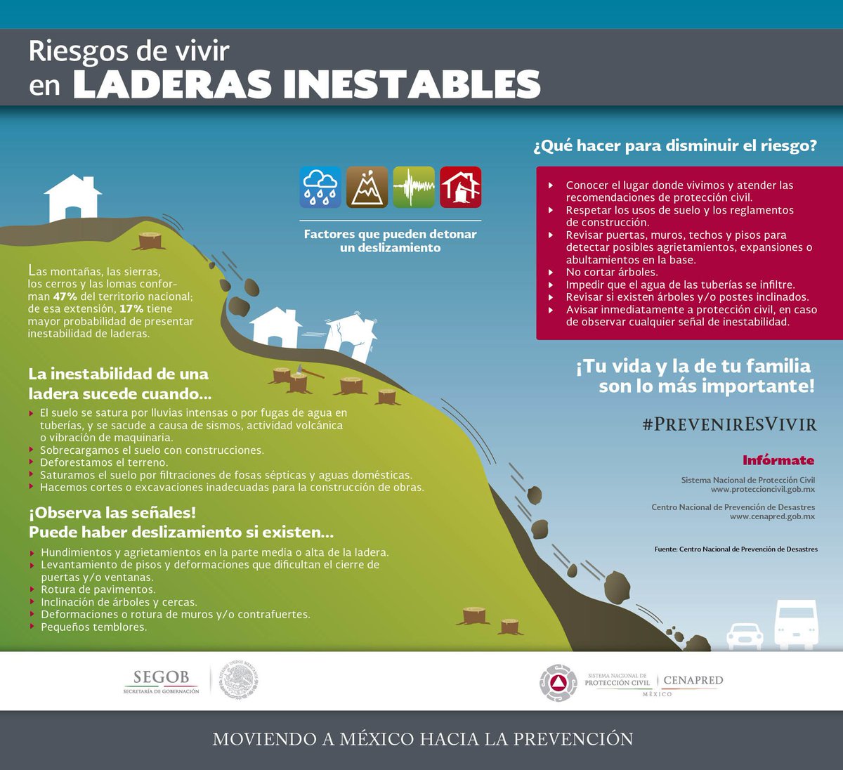 ¡Mantente alerta! En temporada de #Lluvias aumenta el riesgo de deslizamientos de #Ladera #PrevenirEsVivirpic.twitter.com/UKWF3gWaNJ