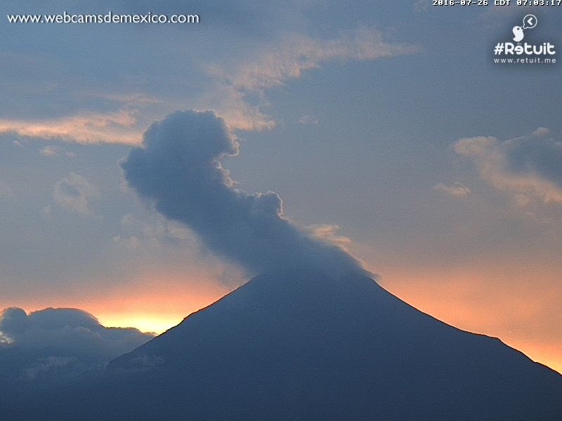 Exhalación del Volcán de Colima a las 07:00 horas con una altura de 1,500 en dirección oeste.pic.twitter.com/VKbISN4Xdo