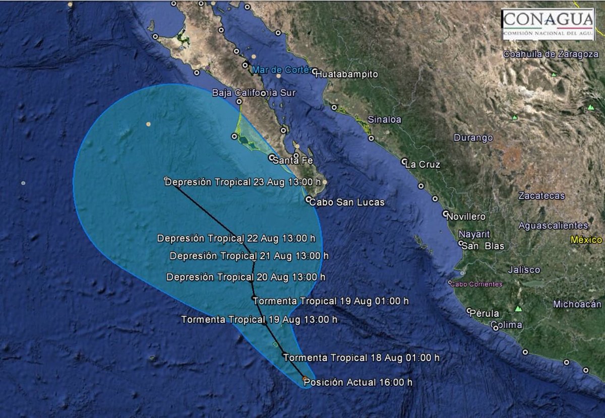 Se ha formado la #DT DOCE-E en el #OcéanoPacífico, se localiza a 565 km al sur de #BCS. No afecta al país.pic.twitter.com/jO1hSs72Ph