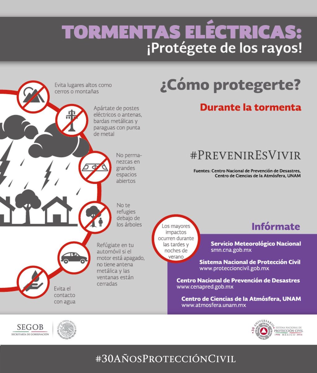 Ante #TormentasEléctricas, evita permanecer en grandes espacios abiertos. No corras, ni te acuestes en el piso.pic.twitter.com/dSrbcY8BN0