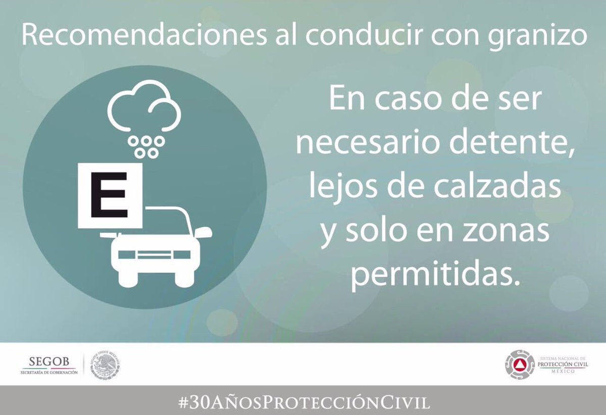 Al conducir con #Granizo disminuye la velocidad y estaciónate sólo en zonas permitidas. #CDMXpic.twitter.com/bDngM6MEXy