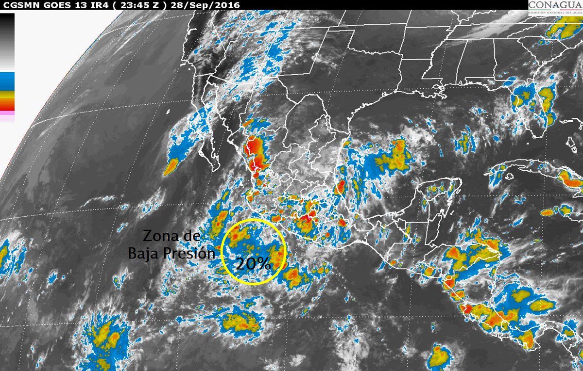 #ZonadeBajaPresión al suroeste de las costas de #Colima y #Michoacán con 20% de potencial de desarrollo ciclónico en 48 horas.pic.twitter.com/Bbk3jowoRK