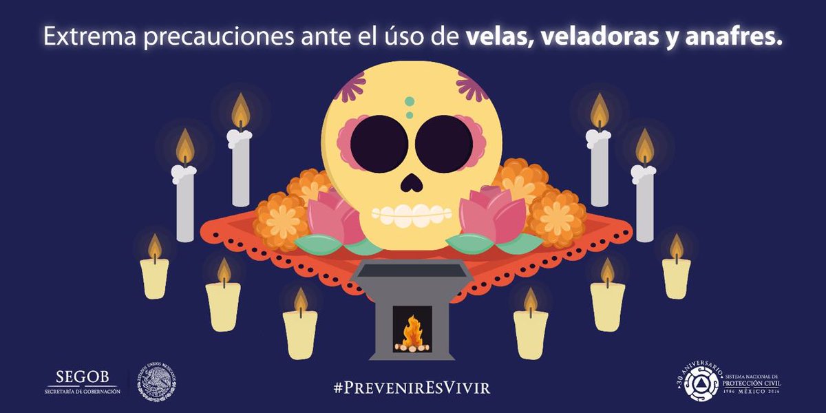 Ya se acerca el #DíadeMuertos, así que recuerda extremar precauciones ante el uso de velas, veladoras y anafres. #PrevenirEsVivirpic.twitter.com/rgksg8wWtz
