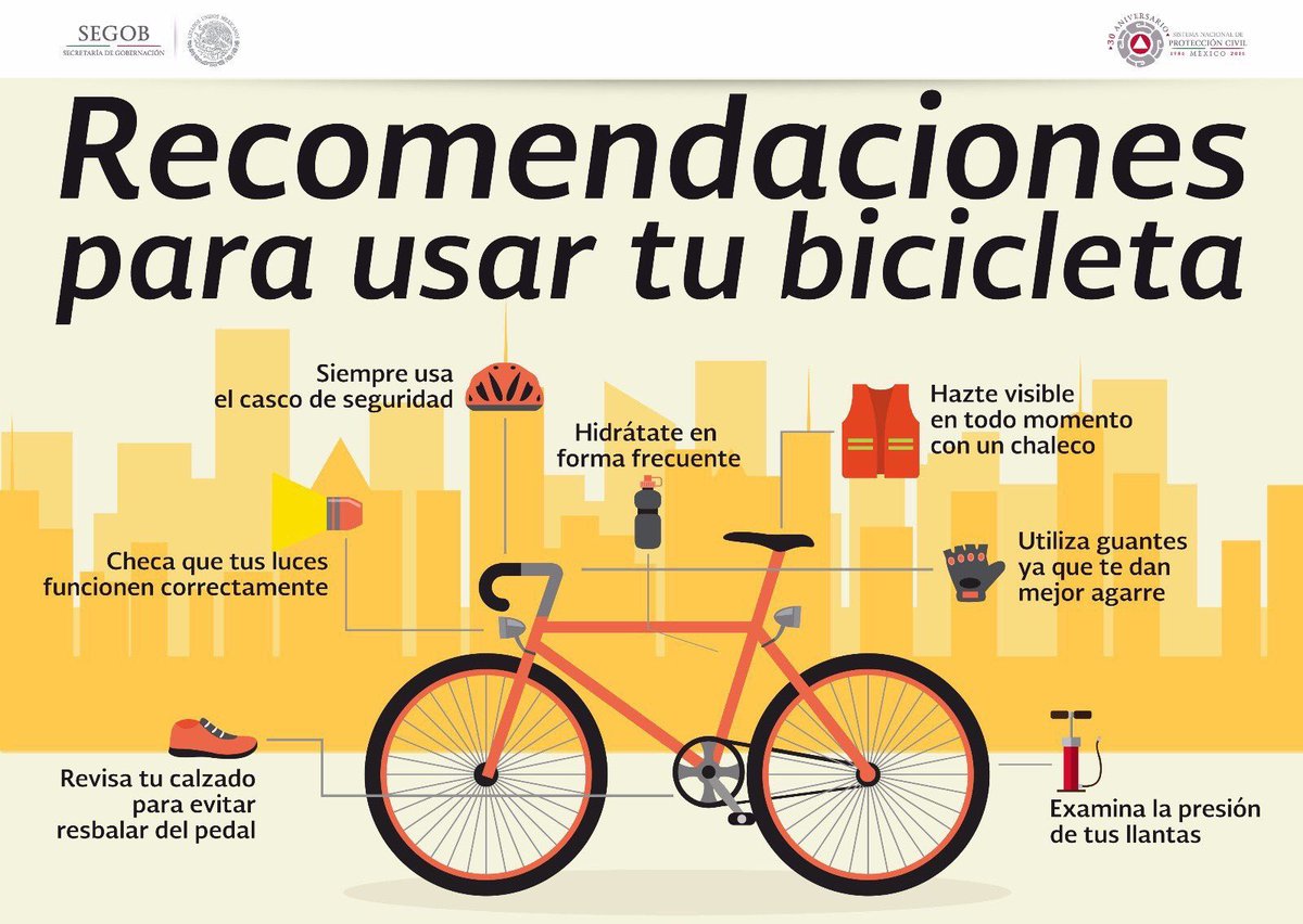 Si sales a andar en #Bicicleta 🚲 este #Sábado, toma en cuenta estas recomendaciones para tu seguridad. La responsabilidad es de todos.pic.twitter.com/hCh4rbzq7u