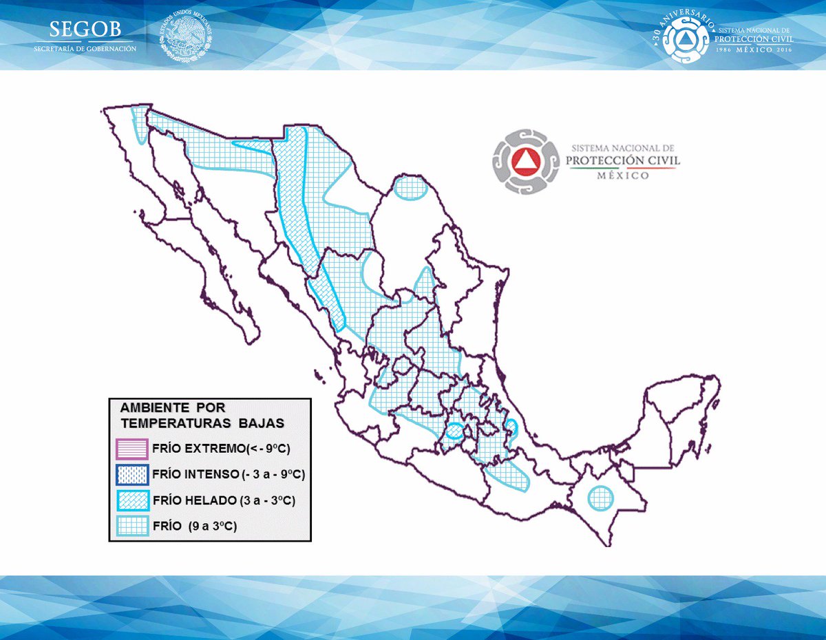 Se esperan temps. de 2 a -3°C en #Son #Chih #Dgo #EdoMéx #Ver; y de 9 a 3°C en #Coah #Jal #SLP #Mich #Oax #Zac #Ags #Gto #Tlax #Pue y #CDMX.pic.twitter.com/iwGwzFMrDL