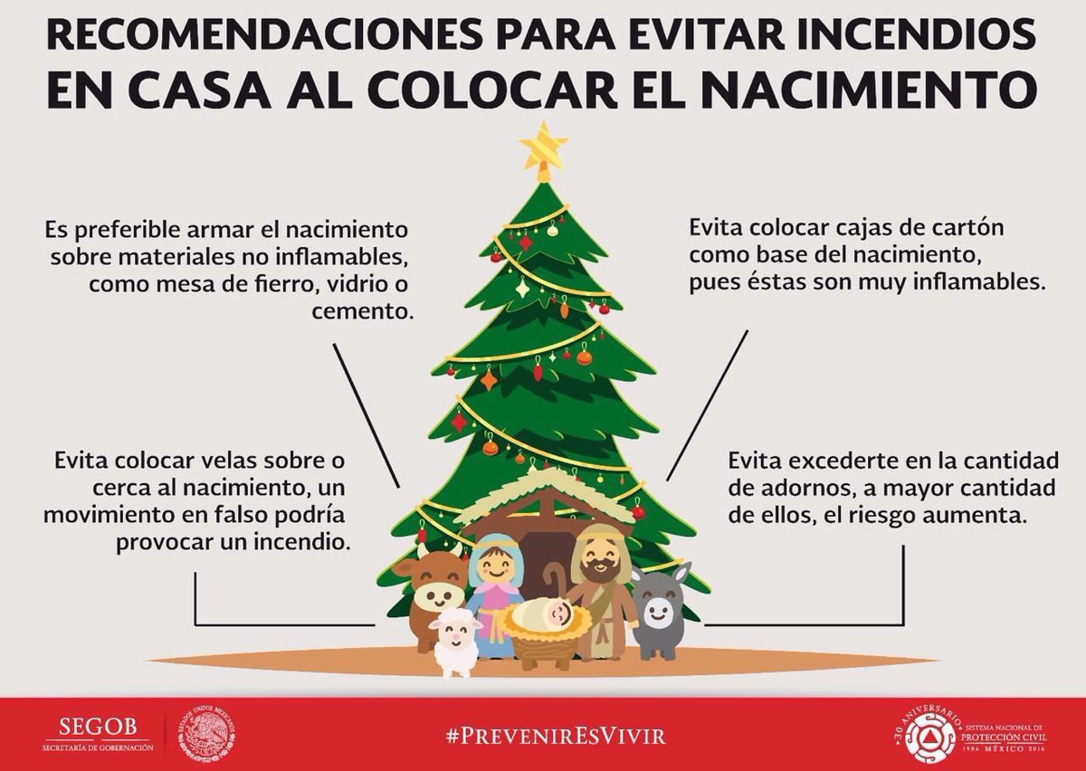 Evita colocar velas sobre o cerca de tu #Nacimiento, ya que un movimiento en falso podría provocar un incendio. #PrevenirEsVivirpic.twitter.com/0vpKAxxzF5