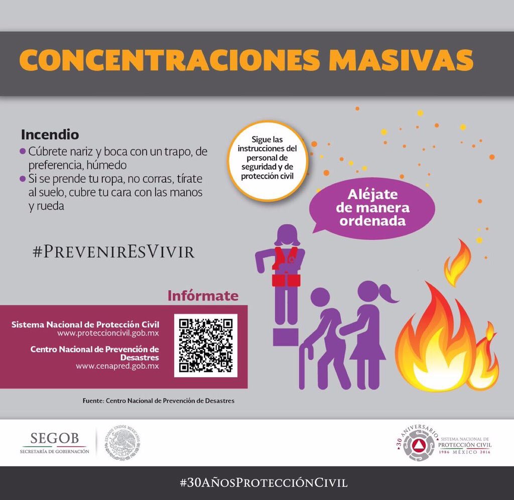 Si durante el evento masivo sucede un #Incendio aléjate de manera ordenada y sigue indicaciones de #ProtecciónCivil. ¡Diviértete!