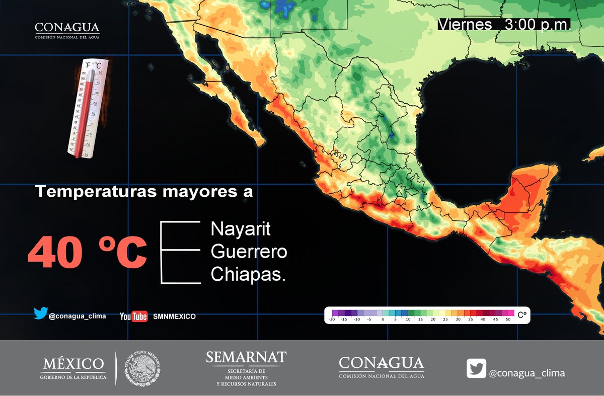 Se pronostican temperaturas mayores a 40°C en #Nayarit, #Guerrero y #Chiapas. Atiende las siguientes recomendaciones:pic.twitter.com/Oug0TpnlkY