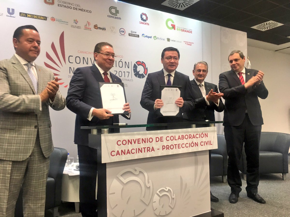 Hoy tuve el honor de acompañar al Srio. @osoriochong y a @eguillen_m en la Firma de Convenio: @SEGOB_mx y @CANACINTRAMex en materia de #PC.pic.twitter.com/t4DJ2lgQMY