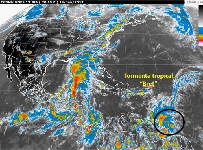 Se ha formado la #TormentaTropical #Bret en el #Océano #Atlántico se localiza a 3,180 km al este-sureste de #QuintanaRoo. @conagua_climapic.twitter.com/njqdSbIv5v