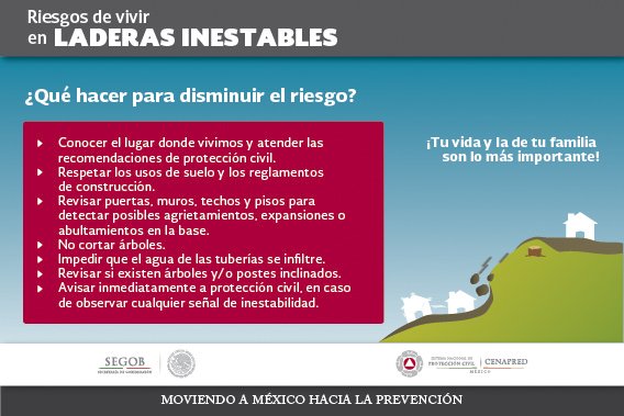 En temporada de #lluvias mantente alerta sobre la inestabilidad de #laderas: @PcSegob #PrevenirEsVivirpic.twitter.com/uTzURpSbHG