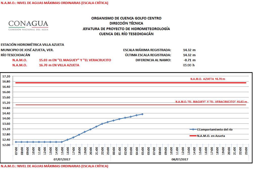 La @conagua_mx informa sobre ascenso del nivel del río Tesechoacán, se ubica a 71 cm de alcanzar su NAMO para El Maguey, #JoséAzueta pic.twitter.com/Cm1eXduuf4
