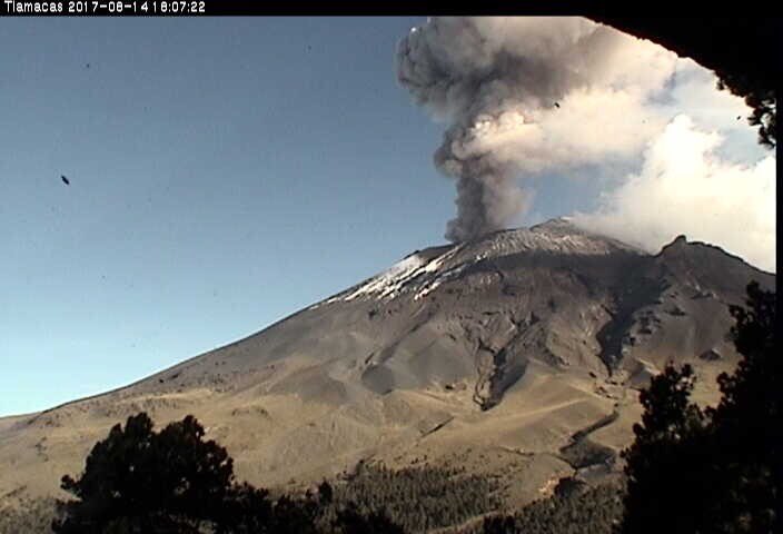 #Exhalación #VolcánPopocatépetl a las 17:59 horas, con una altura de 1,500 metros, dirección este, contenido bajo a moderado de ceniza.pic.twitter.com/IH6XURzJrW