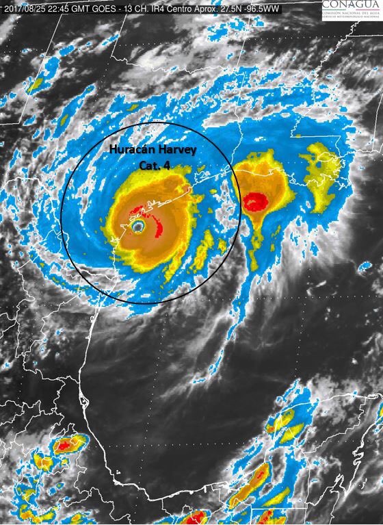 #Harvey se ha intensificado a #Huracán cat. 4, presenta vientos máximos sostenidos de 215 km/h muy cerca de las costas de #Texas, EE.UU.pic.twitter.com/kXzBY8Bykr