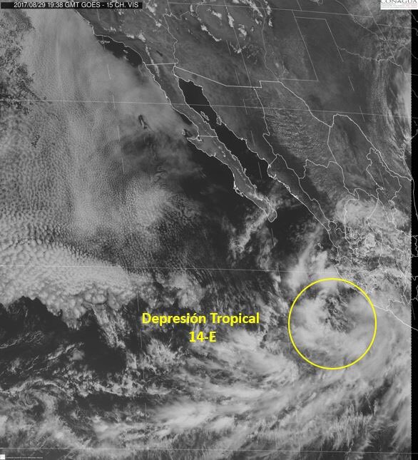 Se ha formado la #DepresiónTropical 14-E en el #OcéanoPacífico, se localiza a 365 km al oeste-suroeste de #Manzanillo, #Colima.pic.twitter.com/ht5IYtx0mg