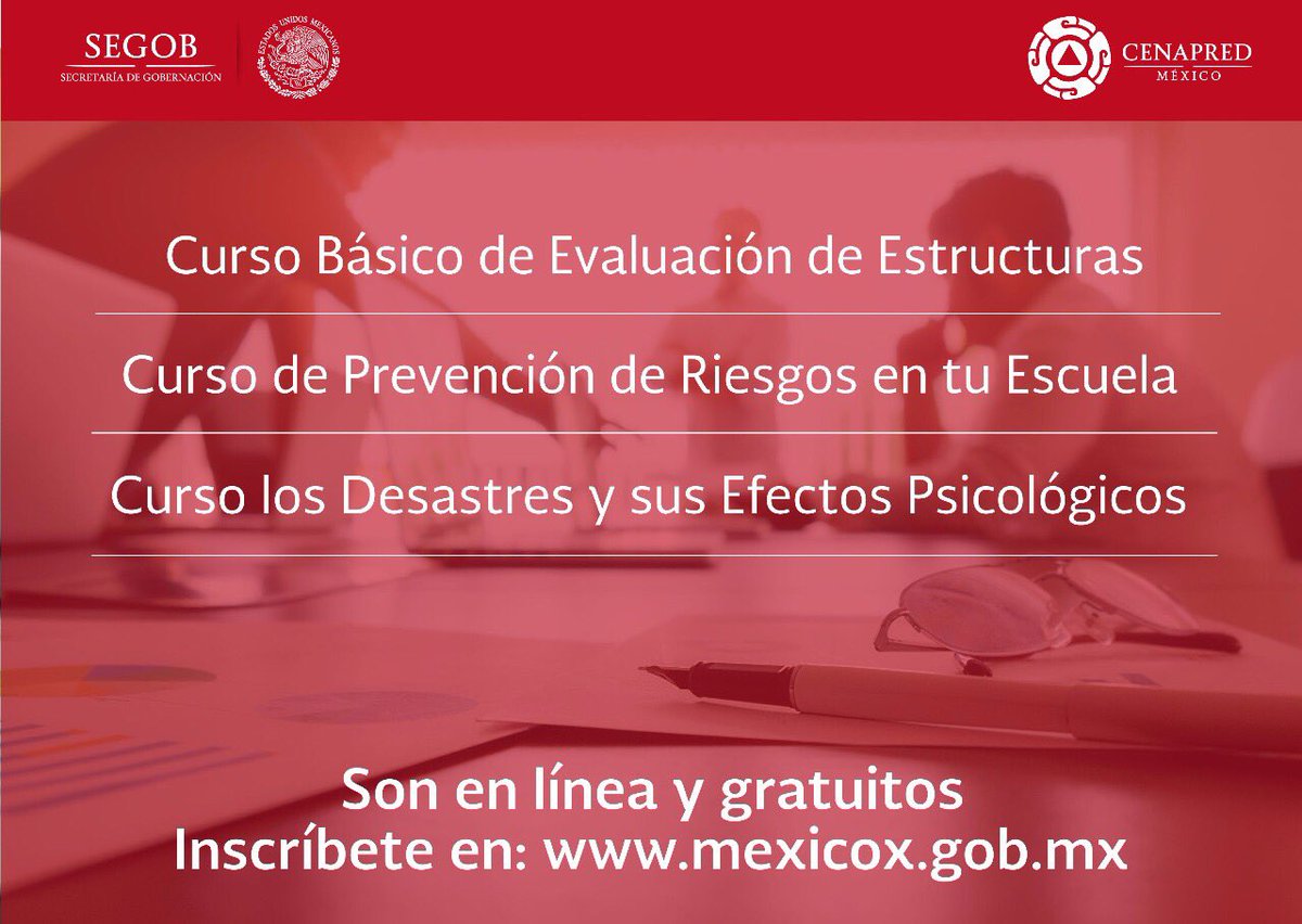 #Cenapred y @SEP_mx a través de #MéxicoX ponen a tu disposición estos #cursos. ¡Son en línea y gratuitos! Inscríbete http://mx.mexicox.gob.mx/register?next=%2Fdashboard …pic.twitter.com/Z1fl9kAk7B