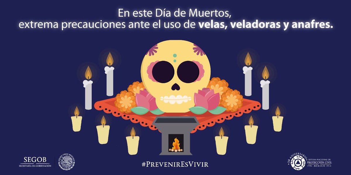 ¿Ya tienes tu ofrenda del #DíadeMuertos? #Recuerda: Mantén velas, veladoras y anafres lejos de materiales que puedan incendiarse fácilmente.pic.twitter.com/yXrWUUaRtj