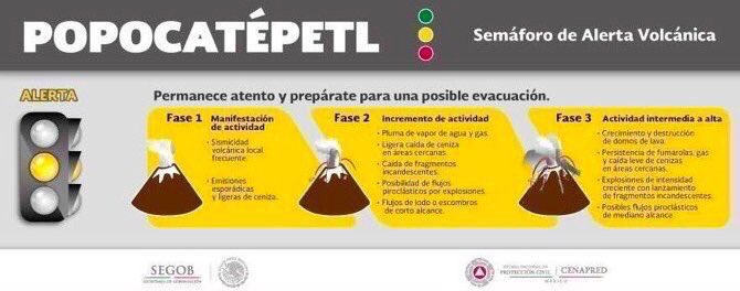 El Semáforo de Alerta Volcánica del #Popocatépetl se encuentra en #AmarilloFase2. 🚥pic.twitter.com/NDepPZ3Xhm