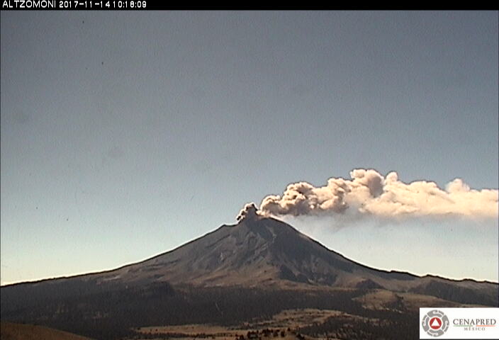 En las últimas 24 horas, el monitoreo del #Popocatépetl identificó 343 exhalaciones de baja intensidad y un sismo volcanotectónico. El Semáforo de Alerta Volcánica se encuentra en #AmarilloFase2.