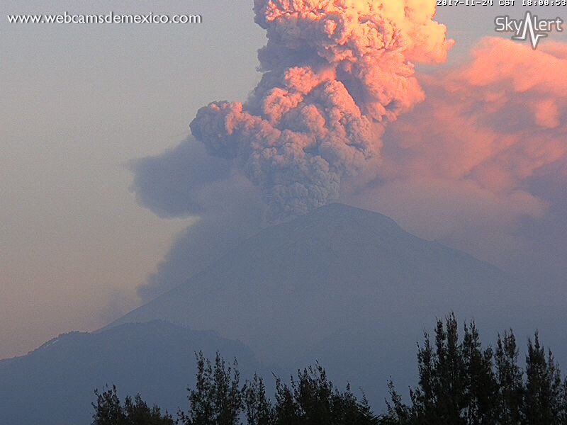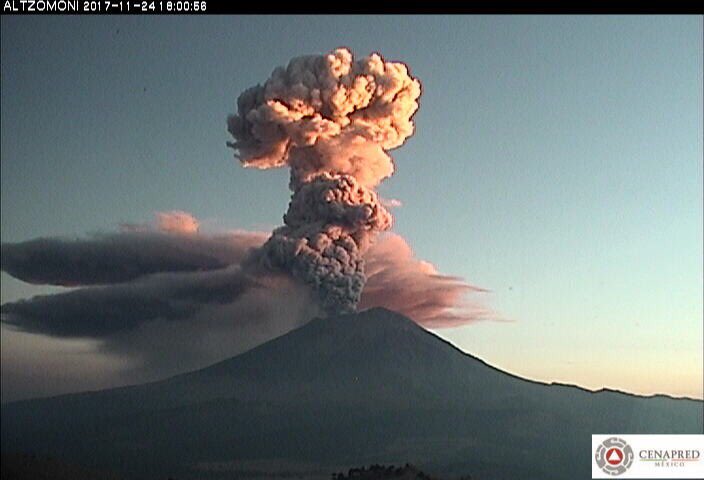 #Exhalación del #Popocatépetl a las 17:54 horas, con una altura de 4,000 metros dirección sur-sureste con contenido moderado de ceniza. @webcamsdemexicopic.twitter.com/tC5rI4TXgq