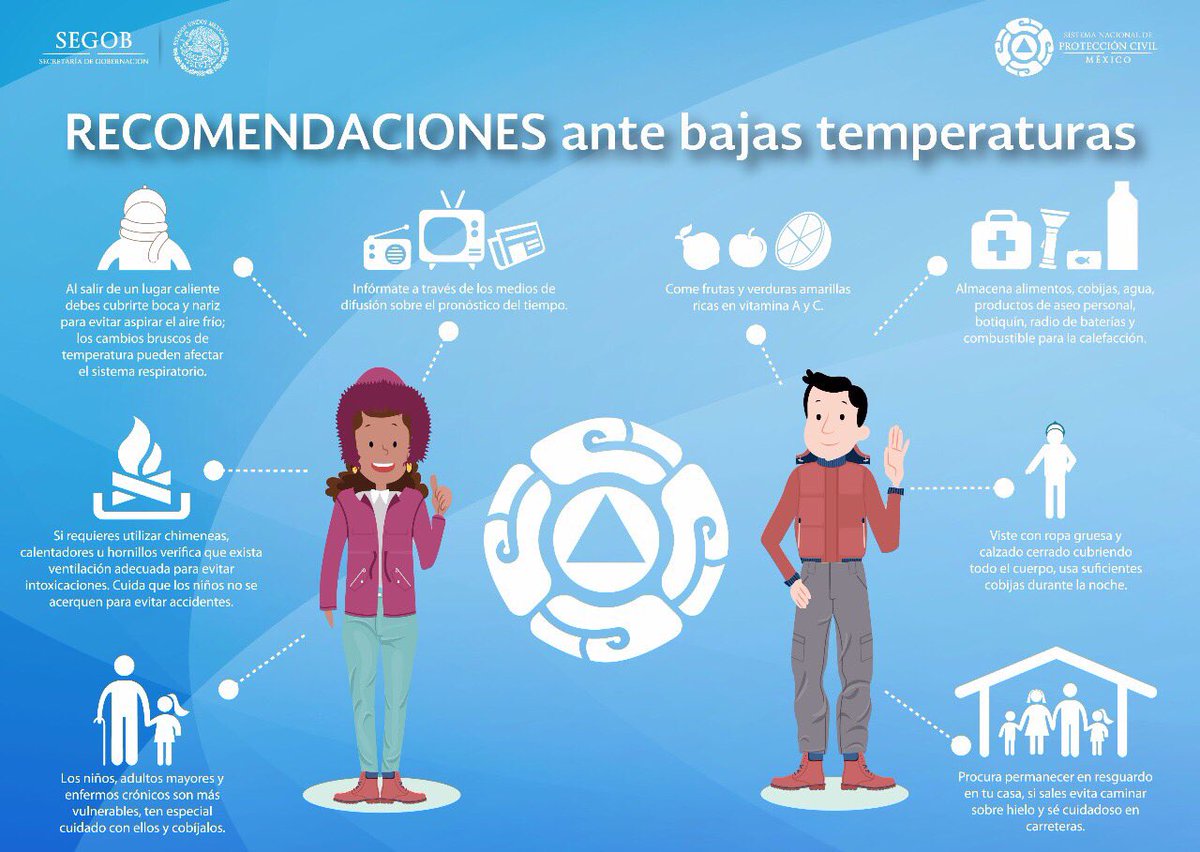 En esta época de #BajasTemperaturas, abrígate en exteriores e interiores y no te expongas a cambios bruscos de temperatura o al #Frío.pic.twitter.com/b2FhpZbWSF