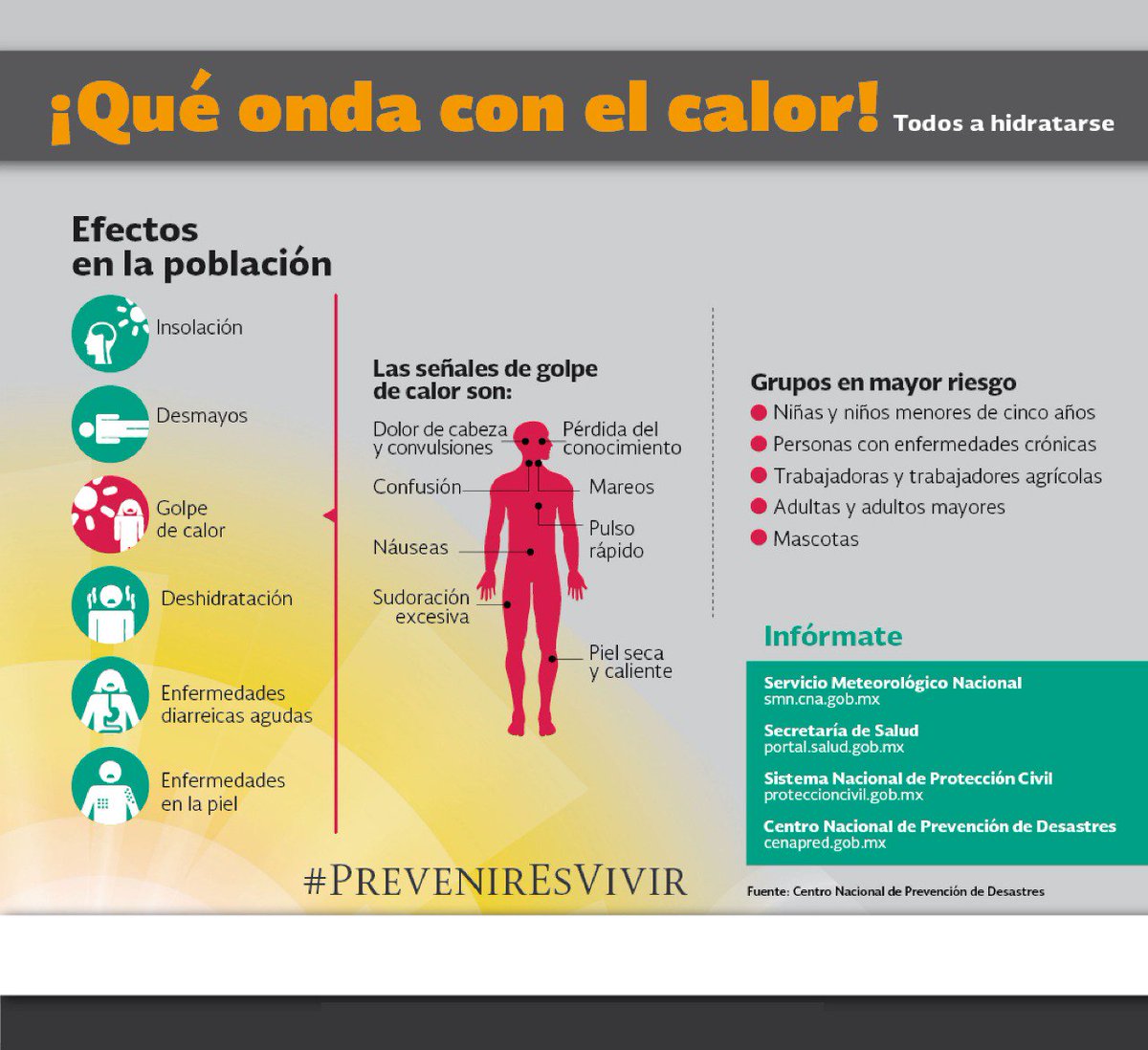 Si presentas estos síntomas puedes haber sido afectado por el golpe de #Calor, acude al centro de salud más cercano.pic.twitter.com/ZSkj7UXaib