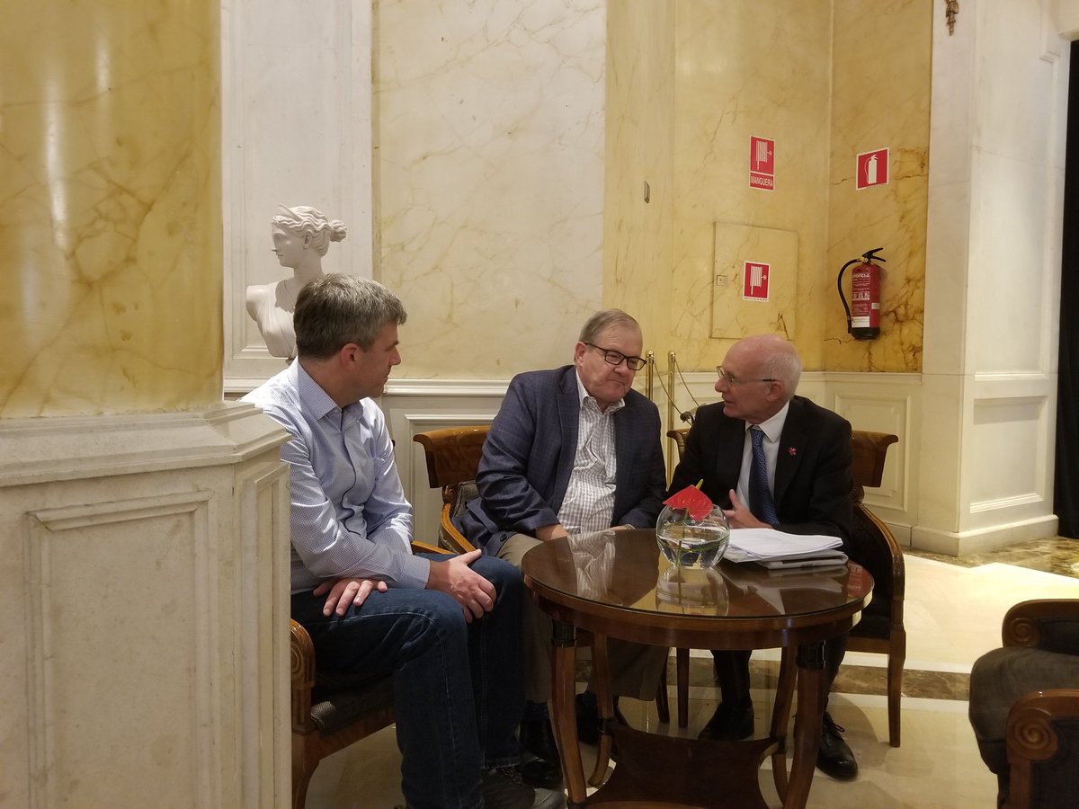En train de discuter des opportunités d'exportation pour le secteur agricole avec l'ambassadeur du Canada en Espagne, Matthew Levin @MLevinCdaSpain @CanEmbSpain @AmbCanEspagne @SaboresdeCanadapic.twitter.com/M93YIKti5c