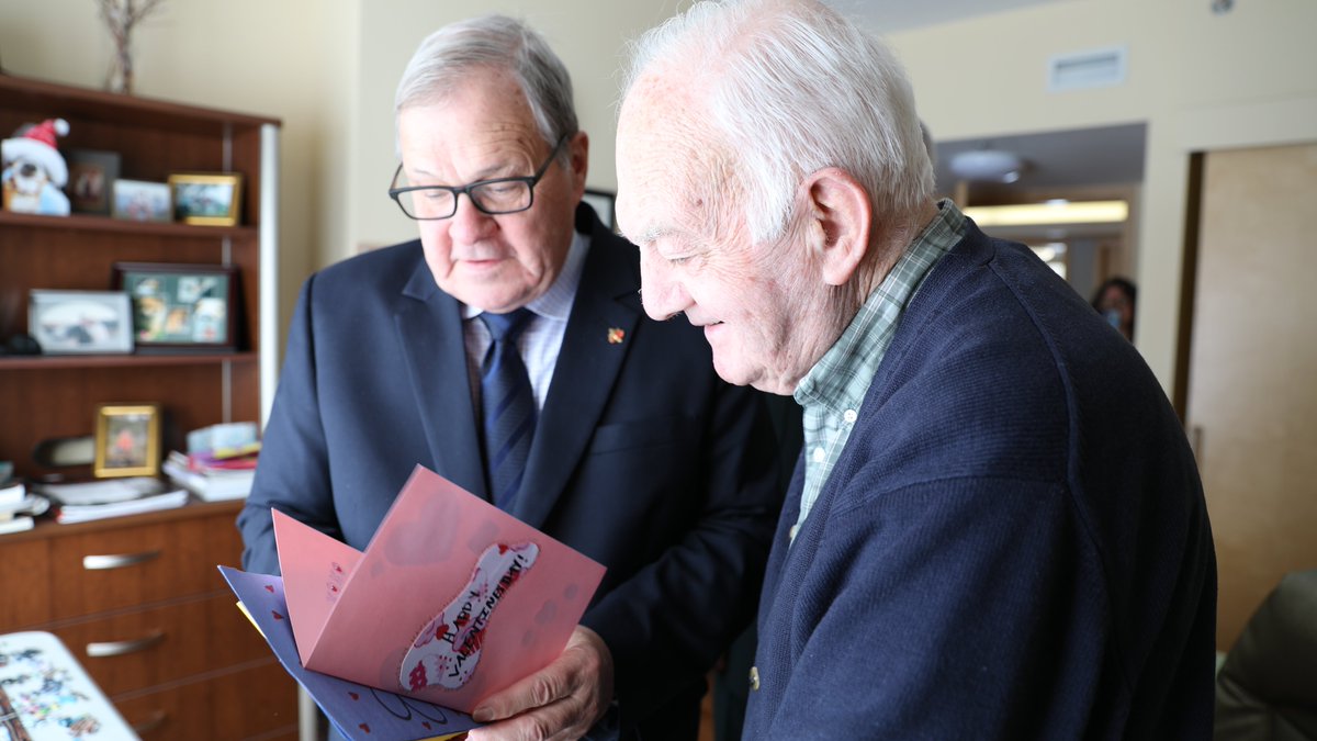 This morning I visited veterans at Colville Manor in Souris, to deliver valentines that were made by students at Stratford Elementary, during my visit there in January. Happy Valentines Day! #CanadaRememberspic.twitter.com/lMDiQL6jD9