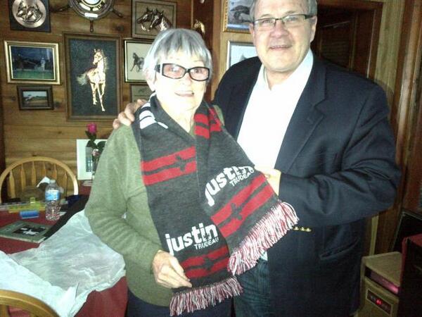 Visiting Vaunda Loane with her great new @JustinTrudeau scarf today in Montague.pic.twitter.com/FTgWq9GQA1