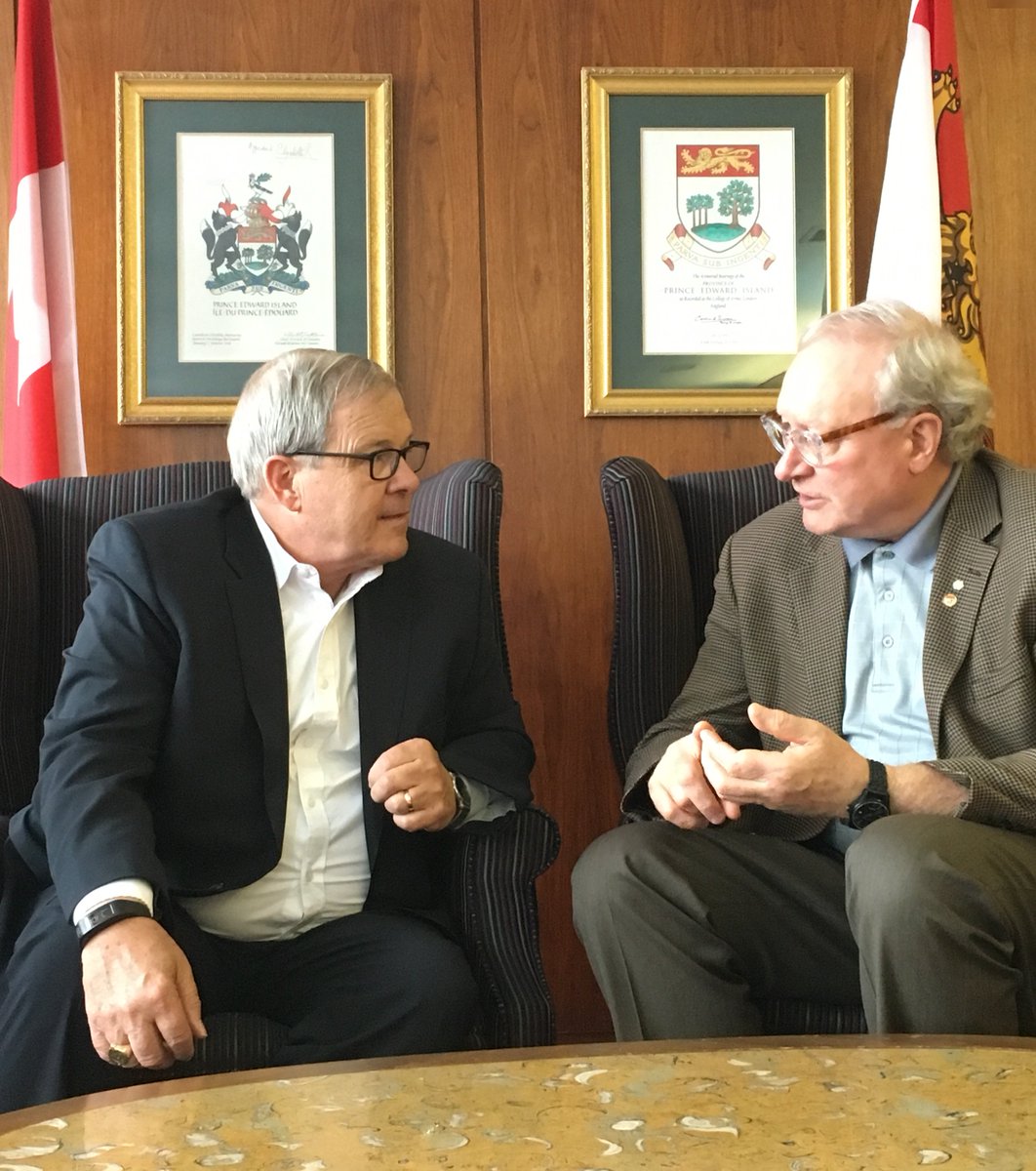 Bien de travailler avec le premier ministre @WadeMacLauchlan, @MorrisseyEgmont @WayneEaster au sujet de l’économie à #ÎPÉ.pic.twitter.com/T2j4REV70e