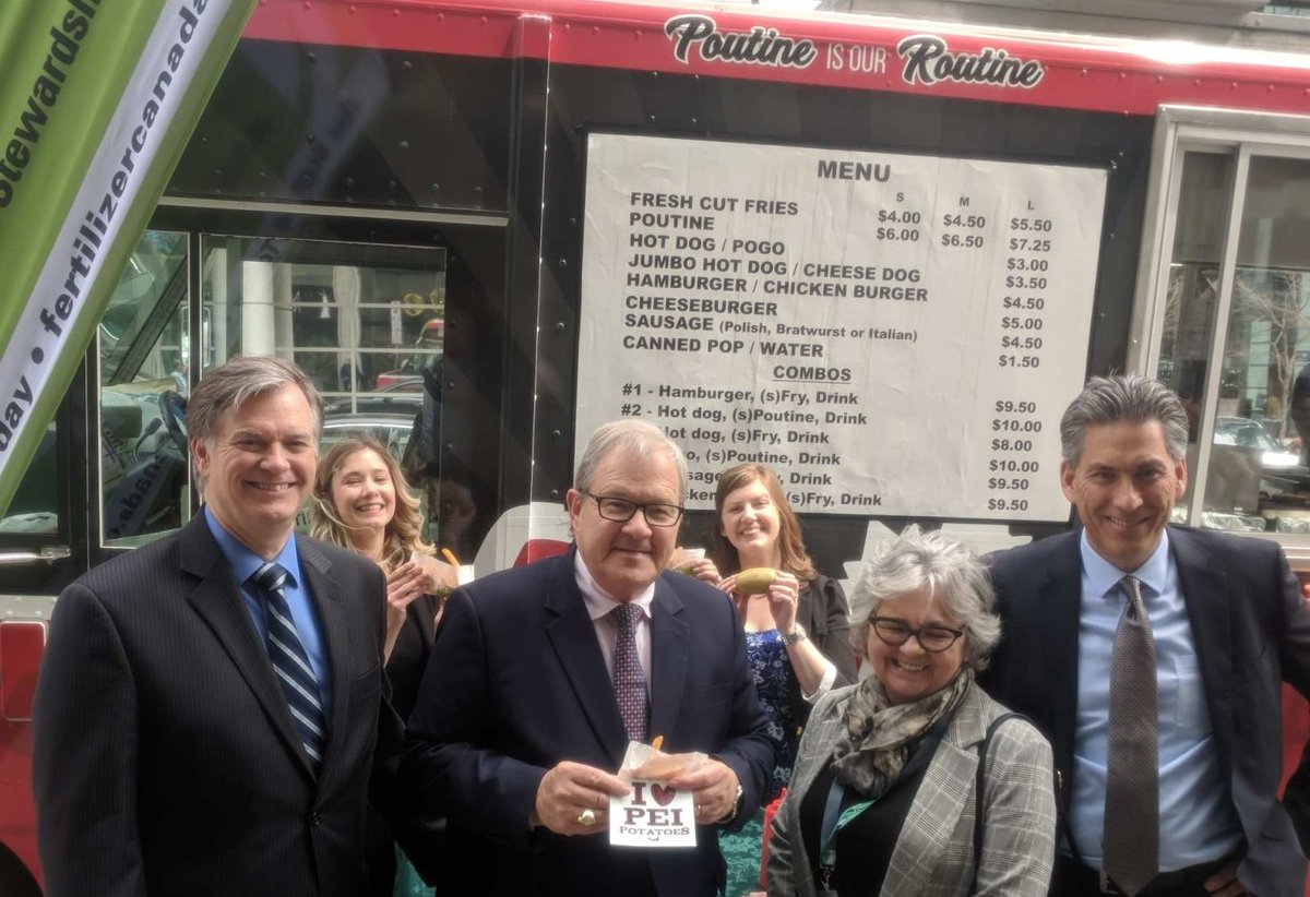 Celebrating #PEI Potatoes with Garth Whyte, Kathy Jordison and Brian Mark from @FertilizerCA, #Yara and @NutrienLTD. Sustainable nutrients are vital to Canadian and PEI agriculture.pic.twitter.com/MR0TyB3eeZ