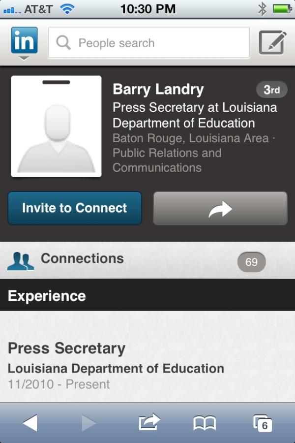 A recent visitor to our staff's linked in. Better use of time: actually serving students. Just sayin. @LouisianaSupepic.twitter.com/oauRwObd