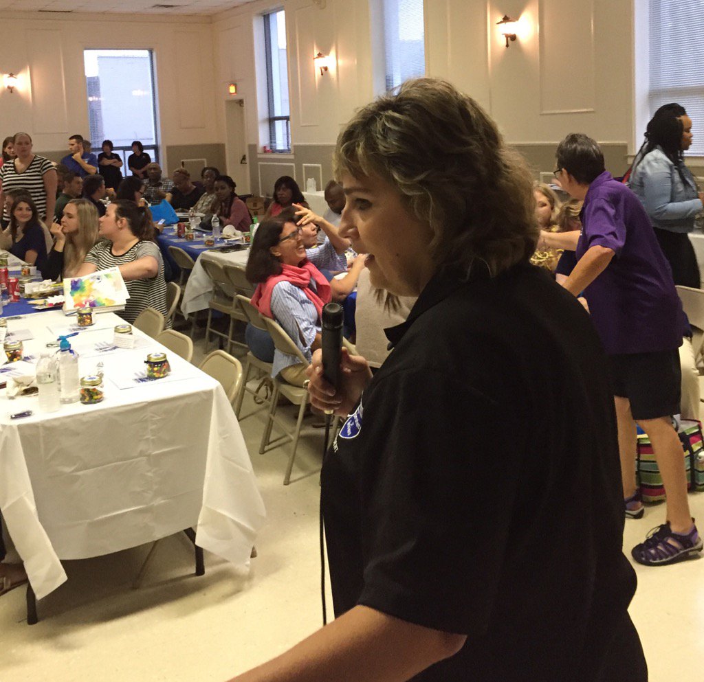 TFT President Dina Esquinance greets new Tangipahoa teachers #laedpic.twitter.com/STf3I7yZp1
