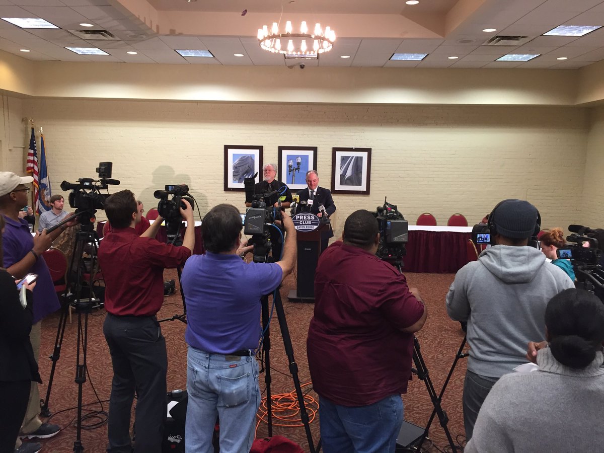 Gov. Edwards faces a battery of cameras at the Baton Rouge Press Club #lagov @LouisianaGovpic.twitter.com/MZrfizhlPg