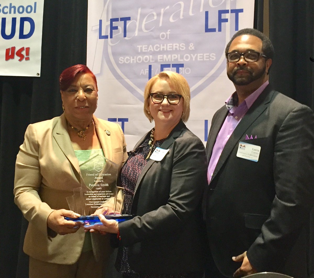 State Rep. Pat Smith is LFT's Friend of Education #PublicSchoolProud #lalegepic.twitter.com/tNM4I896PQ