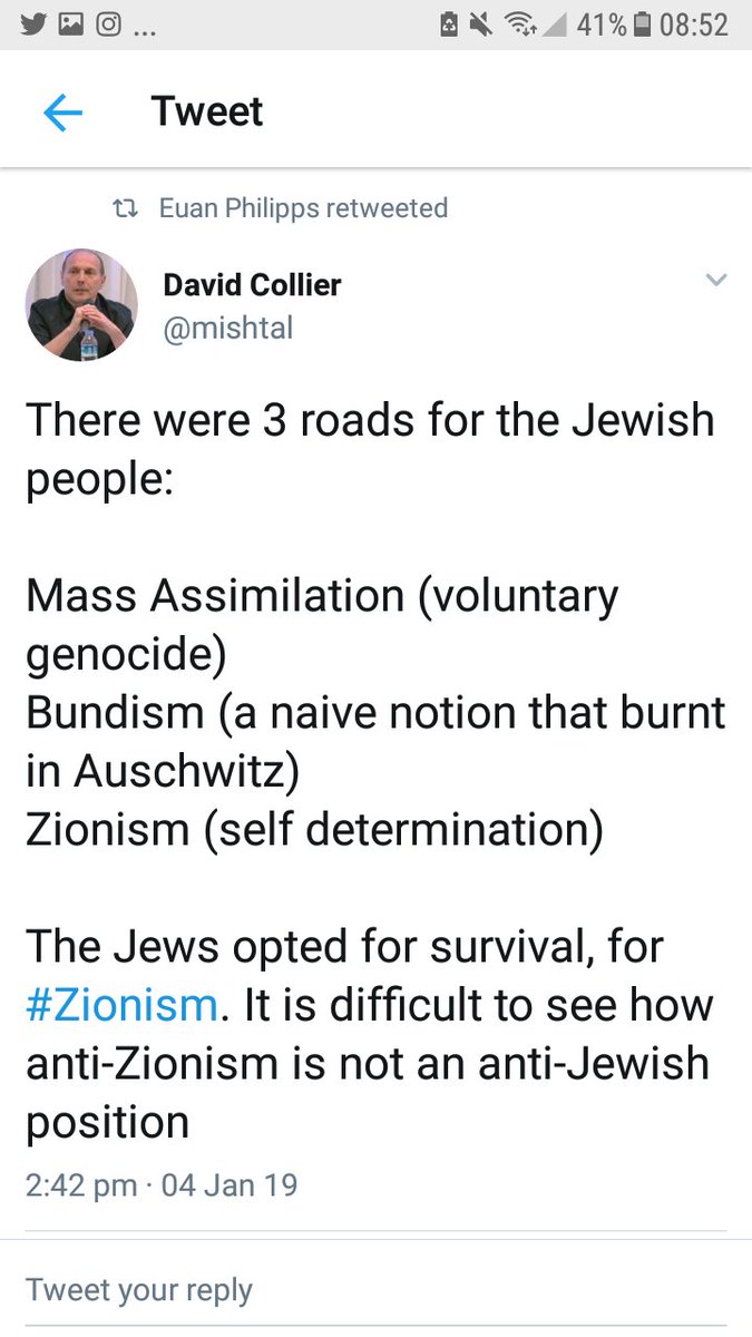 Hi Euan. You are saying this about a Jew who is proud of her semitic ancestry and fight to survive centuries of persecution after the Spanish Inquisition chased us around the globe for 500 years. You're not Jewish. You retweeted Collier's tweet about Bundist incineration... 1/2pic.twitter.com/wiTG0pbpES