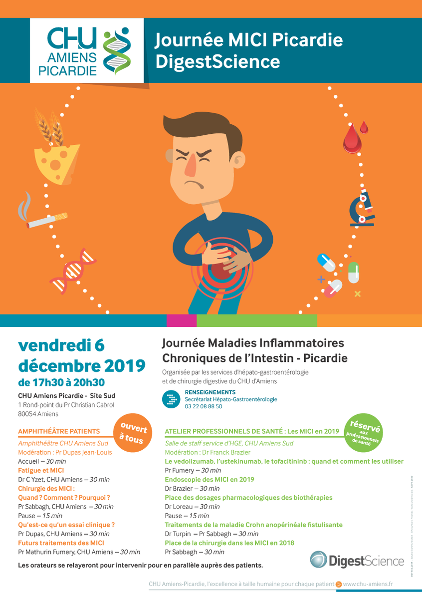 Journée Maladies Inflammatoires Chroniques de l’ #Intestin (#mici ) au#chuamiens Conférences + ateliers pour les professionnels de#Sante C'est gratuit !!#fatigue#chirurgie#traitements#crohn#rchpic.twitter.com/pSgARGcy2l