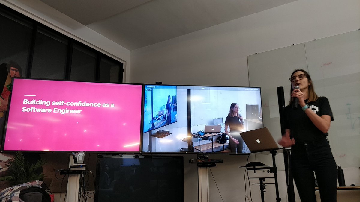 Emmanuelle Franquelin sharing her fight agains impostor syndrome when reconverting to coding