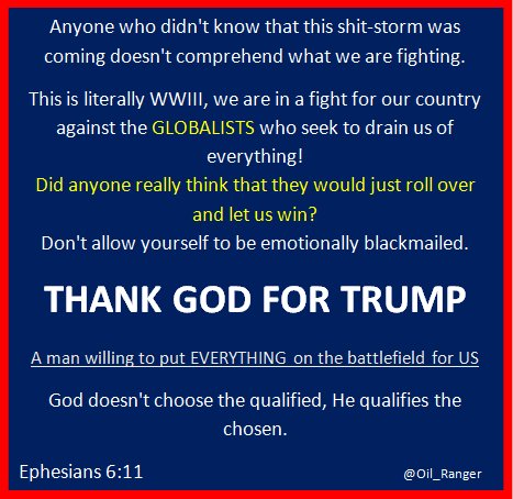 @Oil_Ranger@LadiesForTrump@mikepeterman God Bless Mr. Trump and give him the strength to battle Hillary's Demon tonight.#MAGA