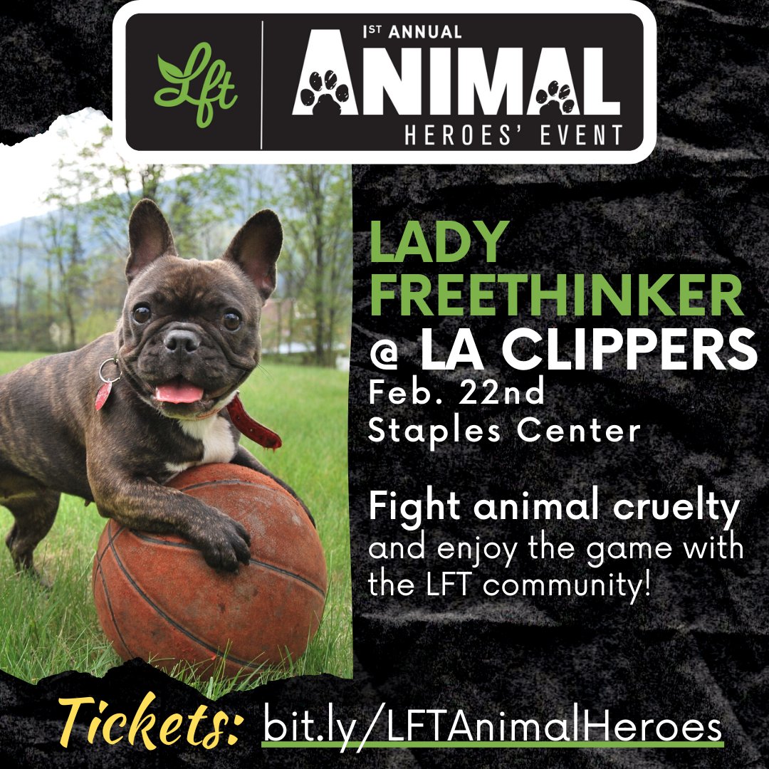 Announcing our first annual Animal Heroes' Event! Enjoy the @laclippers game on Feb. 22, 2020, as LFT is showcased as the Non-Profit of the Game. Connect with the LFT community AND support our mission of ending animal cruelty with your ticket purchase: https://ladyfreethinker.org/animal-heroes-game-2020/ …pic.twitter.com/4LgOVQKUyT