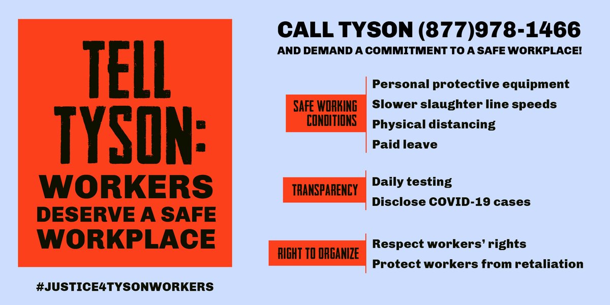 We joined 120+ orgs calling on @TysonFoods to ensure worker safety during #COVID19. #Justice4TysonWorkers Read the letter here: https://bit.ly/Tysonletter pic.twitter.com/iXnnNMxn1l