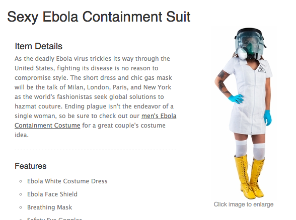 Yes, ‘Sexy Ebola Nurse’ Halloween Costumes Are Real (Pics) http://ladyfreethinker.com/yes-sexy-ebola-nurse-halloween-costumes-are-real-pics-included/ …pic.twitter.com/1oBasIYFLj