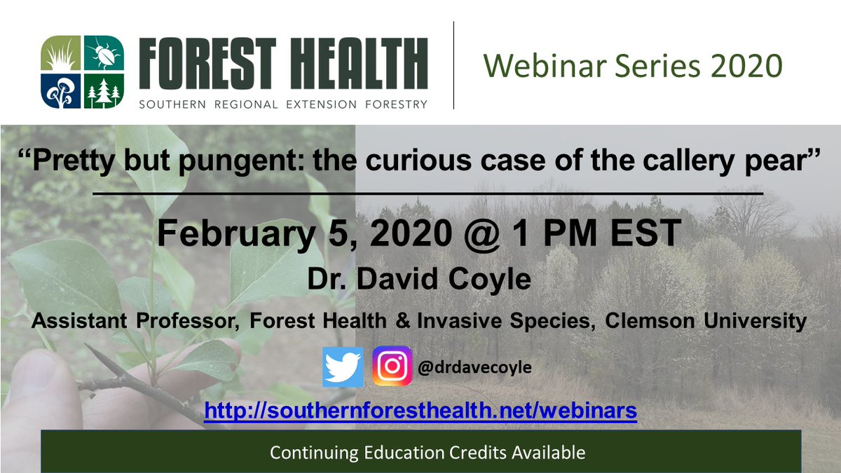 #invasivespecies and why is it bad. I'll also talk about the (also bad) Bradford pear. http://southernforesthealth.net/webinars pic.twitter.com/49eJH76YDP