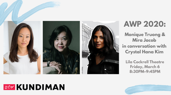 @mirajacob,@Monique_Truong &@crystalhanak! Mira & Monique will read & join Crystal in conversation. We'll be at the Lila Cockrell Theatre, March 6, at 8:30PM. http://www.kundiman.org/full-calendar/2020/3/6/awp-event-with-mira-jacob-amp-monique-truong …pic.twitter.com/SjvC5t9sah
