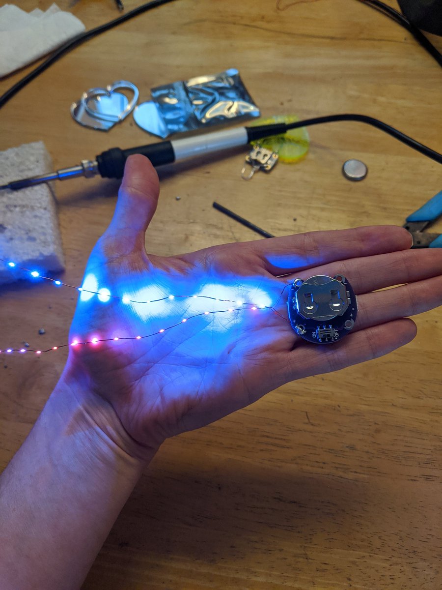 I used two strands of these itty bitty LEDs on copper wire from @EffulgentLED. Twisted them together so they were offset.pic.twitter.com/eX5WbSLaoF